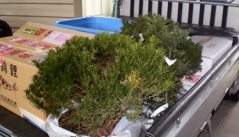 別れてからも別の鯉屋さんに立ち寄り、鯉は4箱計12本。途中のJAにより本日限りという格安の庭木を数本。トラックで来てよかったで〜す。