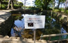 この様な立て札もあるのですが錦鯉に標準を合わせて釣りをしている方もいるようです。残念です。 |
