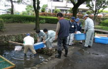 建設課緑と公園係りの方ですが、錦鯉を知り尽くしている様な優しい放流をします。