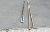 井戸の配管を取り替えるにはたいへんな力が必要です。40mm×25mのパイプには水が目一杯入っています。しかも深い井戸なので2本のパイプの力を利用しています。