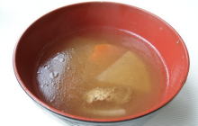 なが~いトンネルを抜けるとやはり寒かったです。バスから降りると暖かいトン汁を土産店が振舞ってくれます。 |