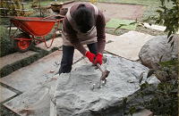 景気の良いバブルの頃でしたら立派な庭を造る方も多く友人、知人に声を掛けておくと大きな石でも簡単に行き先が決まったのですが今時、庭に大きな石を置くような話も聞きません。良い石なのですが割って小さくして処分する事に。 |