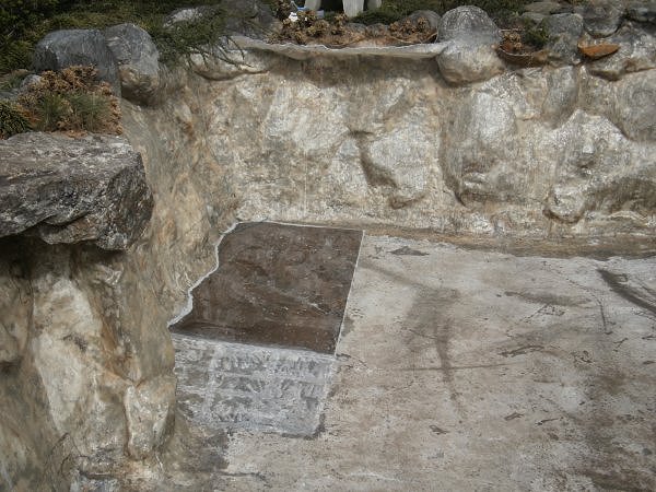 島は約1㌧の石の上に小さい石を積みあげて作ってありました。小さい石は何とか出せましたが台座の石はどうにもなりませんので割って出す事に。 |