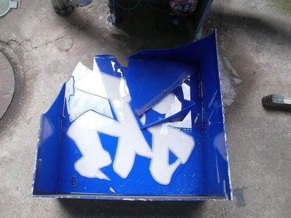 早速作業を開始します。割れたところの裏側に透明なアクリル板を必要な大きさに切りボンド付けして圧着します。