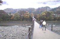 いよいよ香嵐渓に着くようです。ここを代表する橋のようです。待月橋という真っ赤な橋です。車窓からの眺めの方が良かったですね。