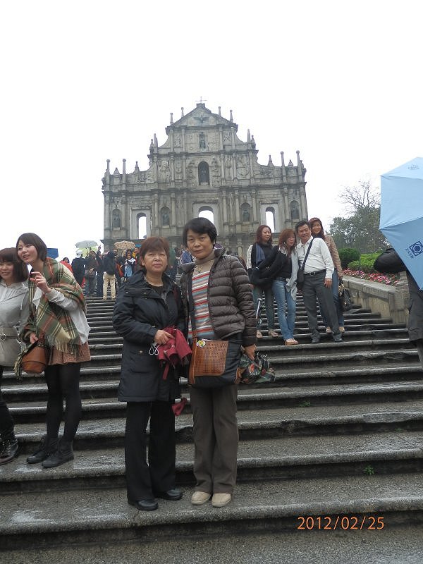 聖ポール天主堂と言う所だそうです。壁が一面あるだけでおかしいのでガイドさんに聞いたところ、昔大きな台風で壊れてそのままだそうです。