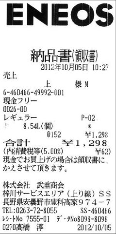朝、燃料を満タンにしたスタンドで再び満タンにしました。7.1ℓ入りました。帰路はややアクセルを開きぎみでしたので下り勾配にもかかわらず燃料は多めに消費したようです。 |