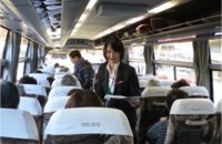 バスは45人乗りですが今日のお客さんは35名くらいです。初めての体験ですが後部2列、9名で利用する座席を4名で使う事が許されました。
