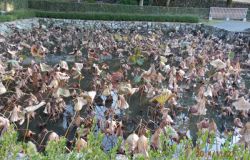 このお寺にも蓮池があります。鉢植えの蓮は毎年根を軽くしないと花が咲きません。この様な池ではどうなのでしょうか? |