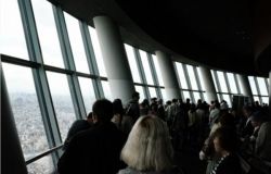 350m展望デッキです。大変な数の人達で簡単には外を覗けません。どこかお祭りでも来ているようで人波に押されて動いているようです。下界を見ずに帰る方も多いでしょうね。