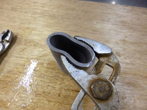 塩ビ管の大きさは違うもので比べていますが潰すとこんな感じになります。 |
